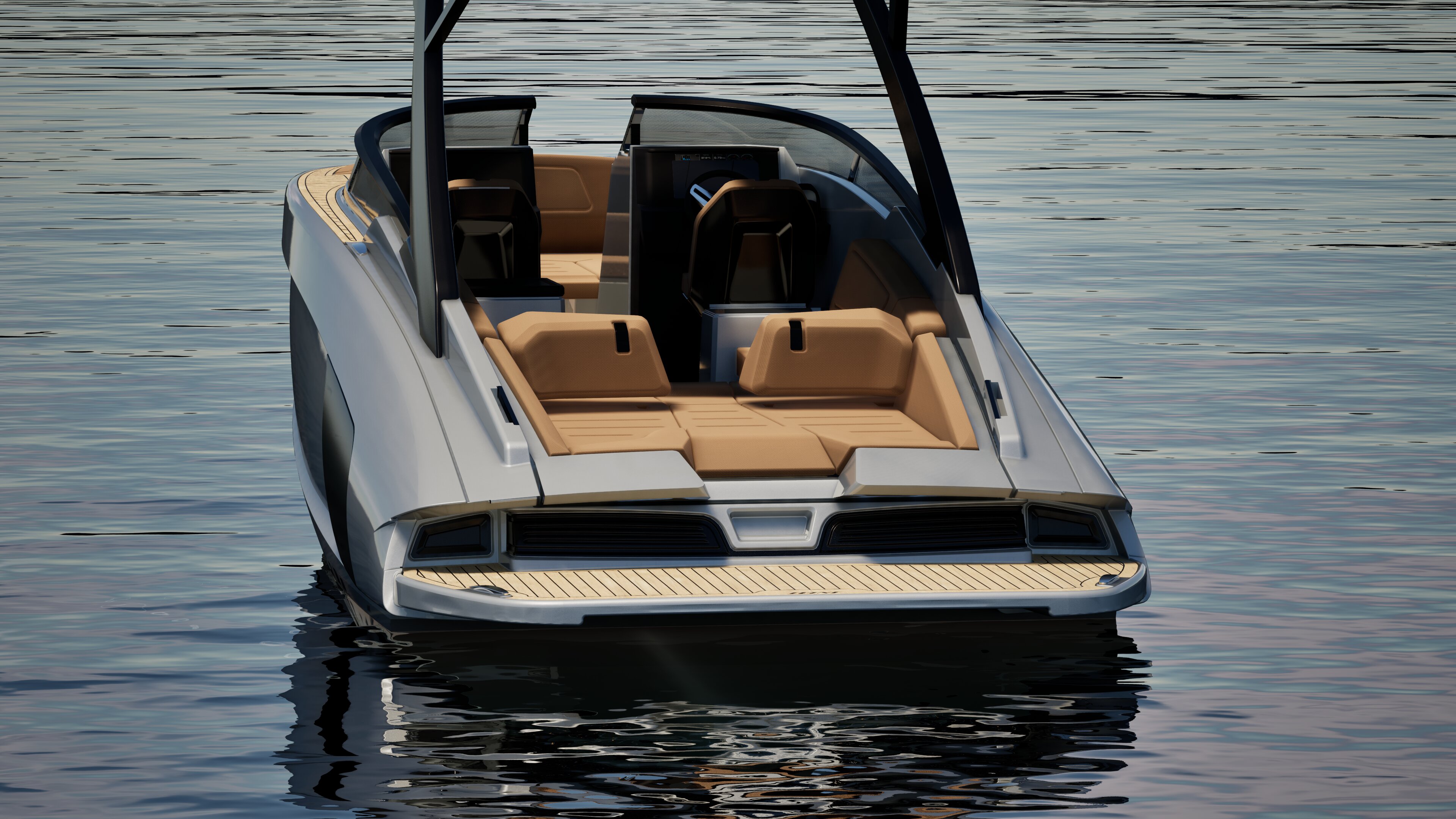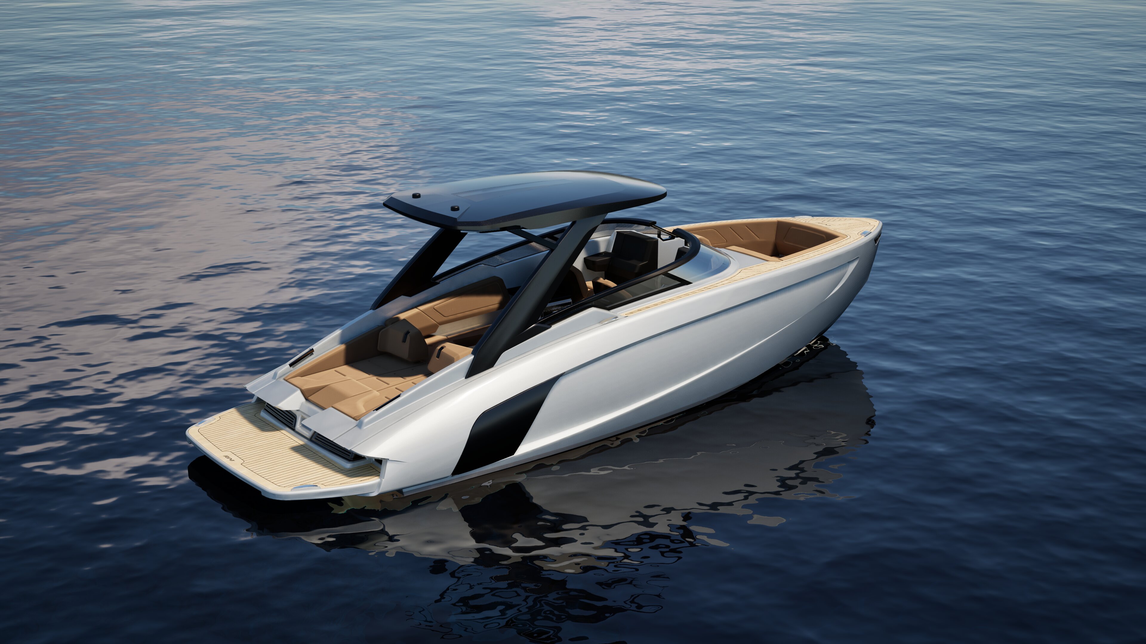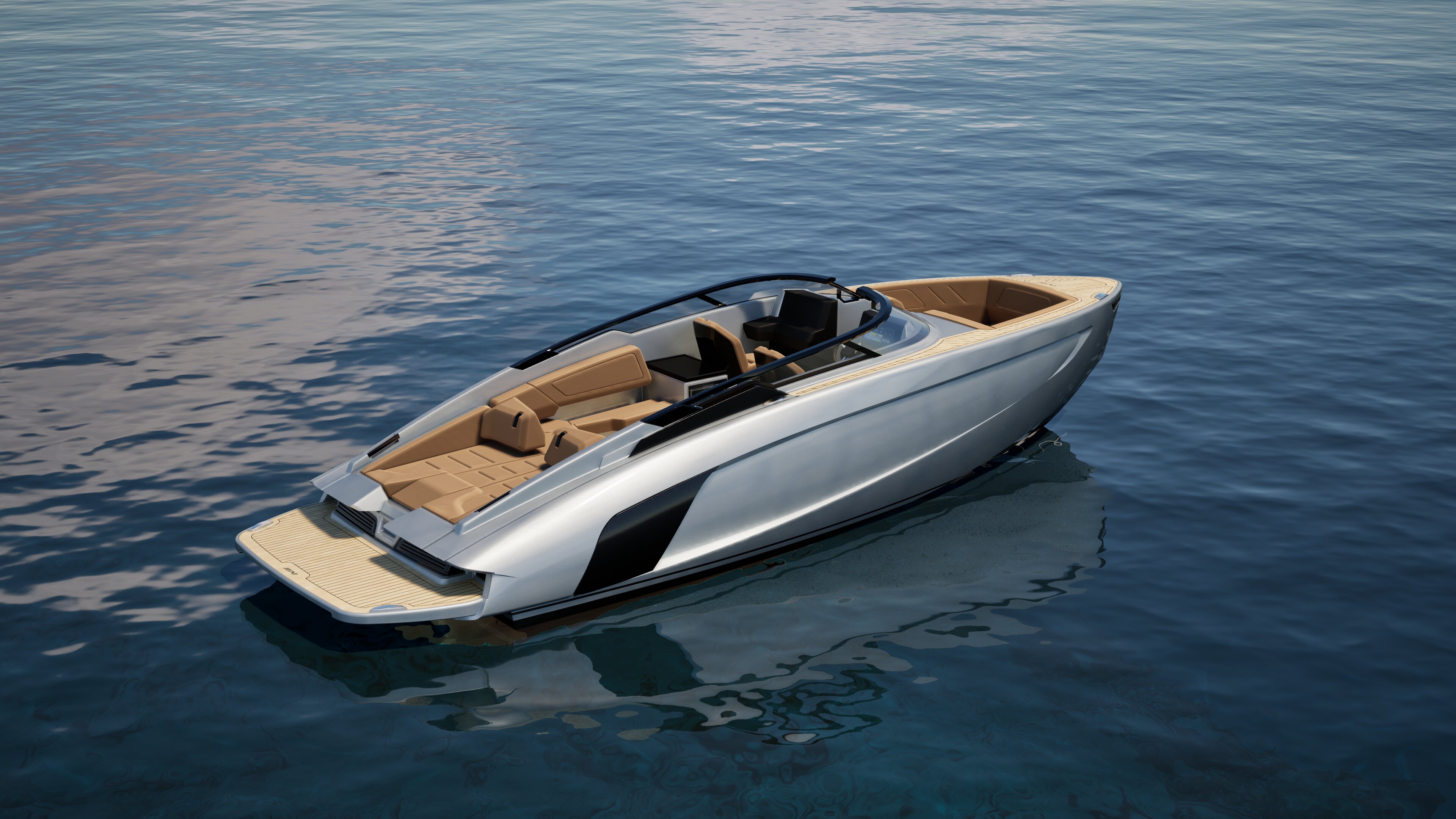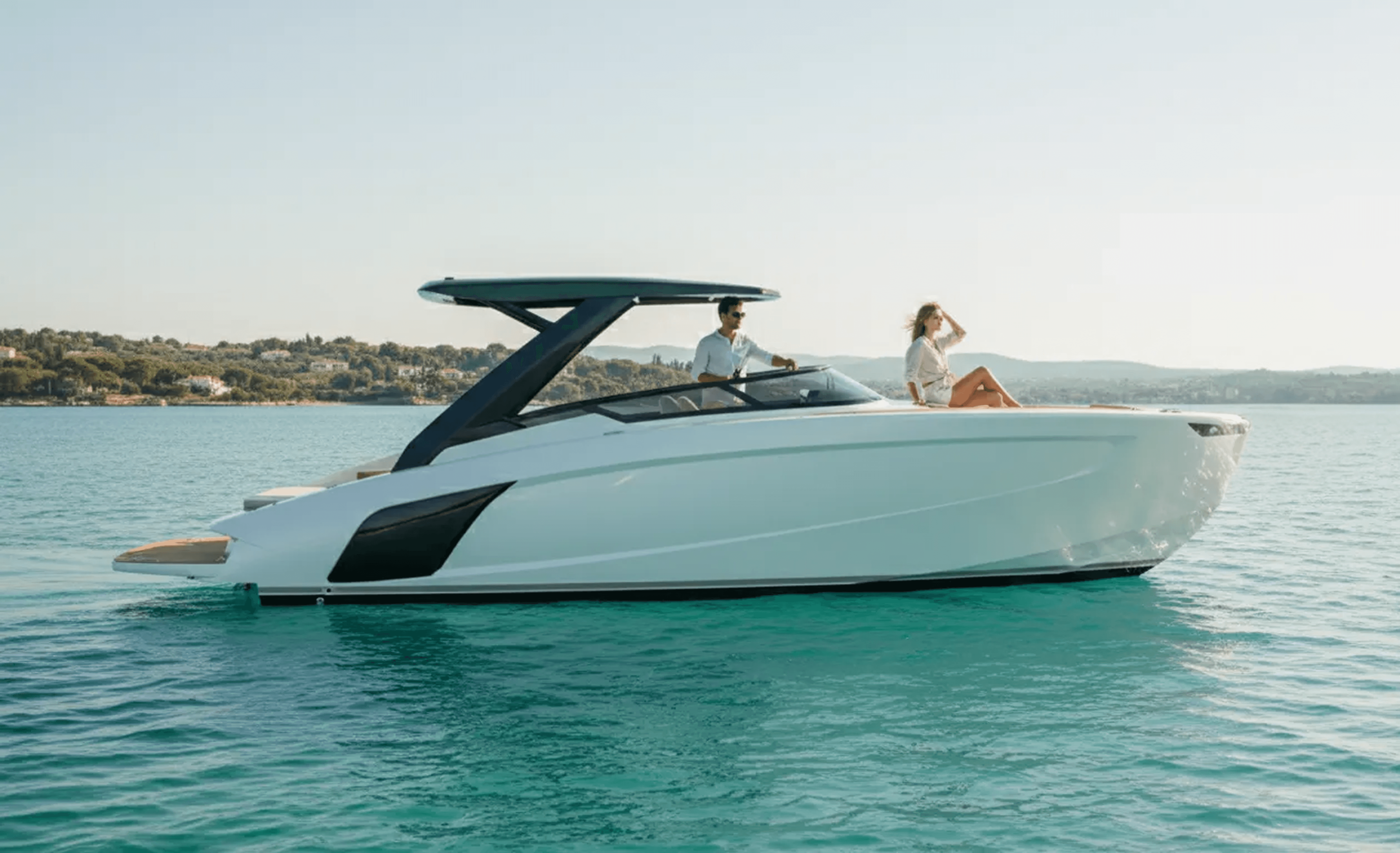 The elevated bow keeps water away, enhancing comfort while speeding up. A refined profile that improves performance without compromising elegance.
